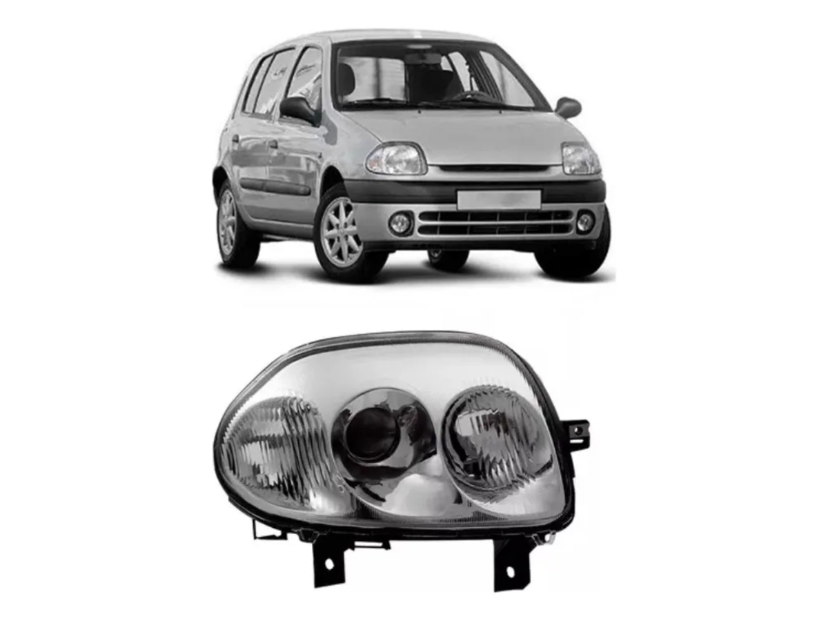 Farol Direito ELETRICO S/MOTOR FOCO DUPLO Clio 1999 a 2002 DEPO CROMADO