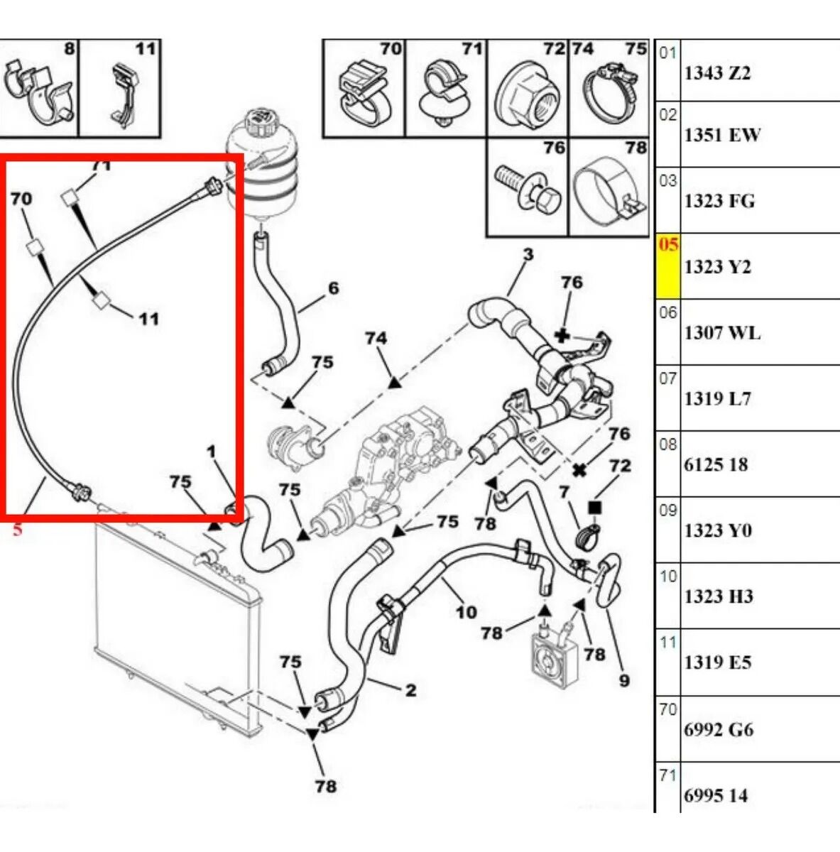 | Número de peça | Peugeot 206 207 C3 1323y2 1.4 1.6 |